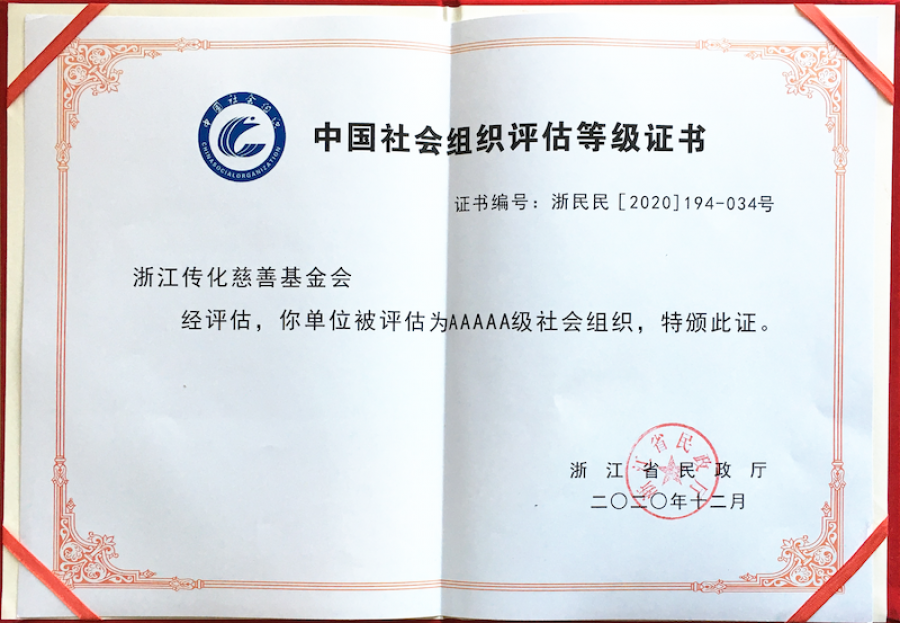 傳化慈善基金會榮獲2020年度“5A級社會組織”稱號